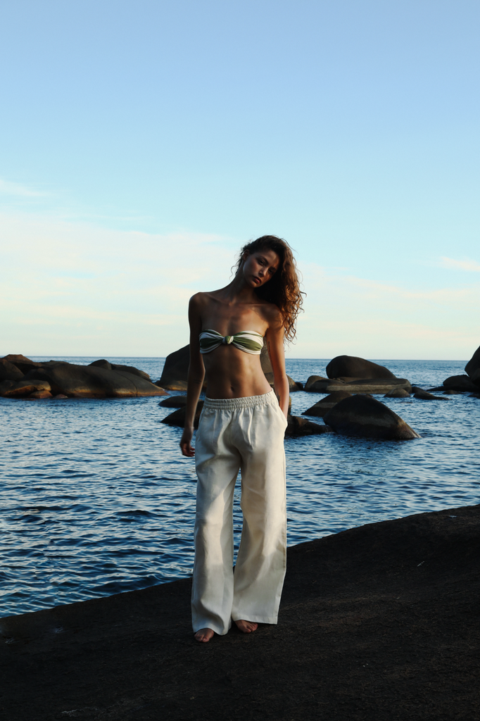 Minimalista e marcante, o biquíni Bandeau Com Listras Cap Ferrat celebra a beleza da simplicidade com sofisticação.