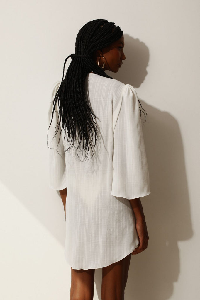 O nosso cover up off white combina perfeitamente com nossos biquínis off white, essa peça elegante e chic proporciona um look monocromático sofisticado. Perfeito para dias na praia ou na piscina.