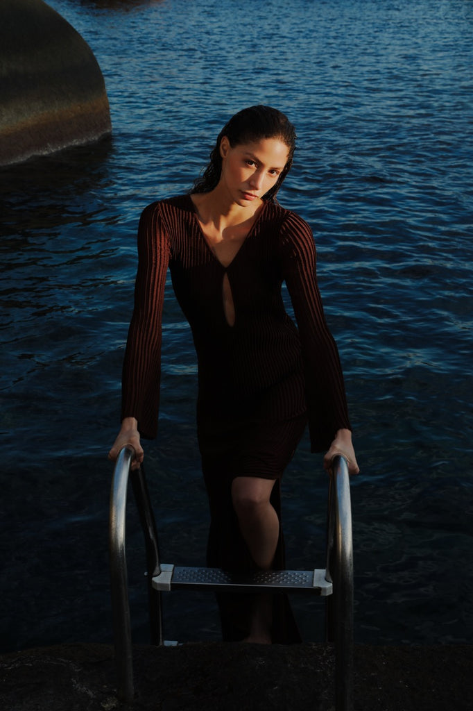 Com leveza e presença, o vestido Jane Coffee acompanha o ritmo do verão com elegância silenciosa.