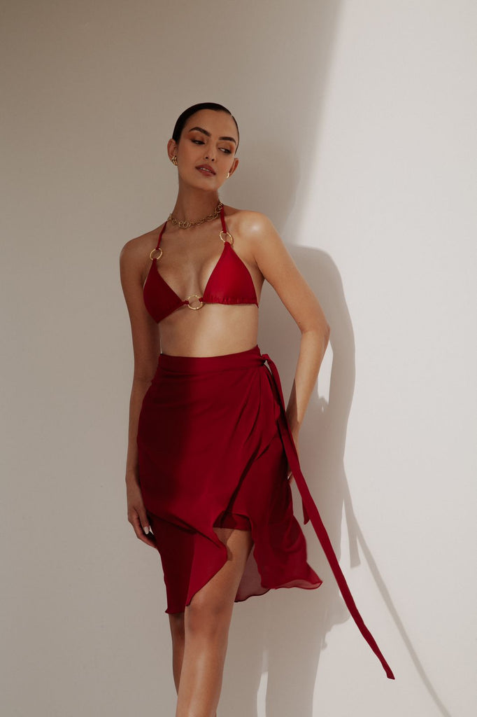 A pareô é uma peça leve e sofisticada. Forrada e com transpasse, combine com o nosso maiô frente única vermelho com o monocromático poderoso. Composição: 100% seda |